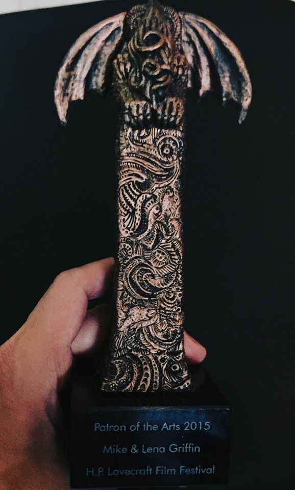 Last and most surprising, at the film awards ceremony (where they usually give prizes for best feature, best short film, best screenplay and so on), this year they had 2 special awards for “Patron of the Arts.” The first went to long-time HPLFF volunteer Greg Lowney and the other went to me and Lena Griffin.