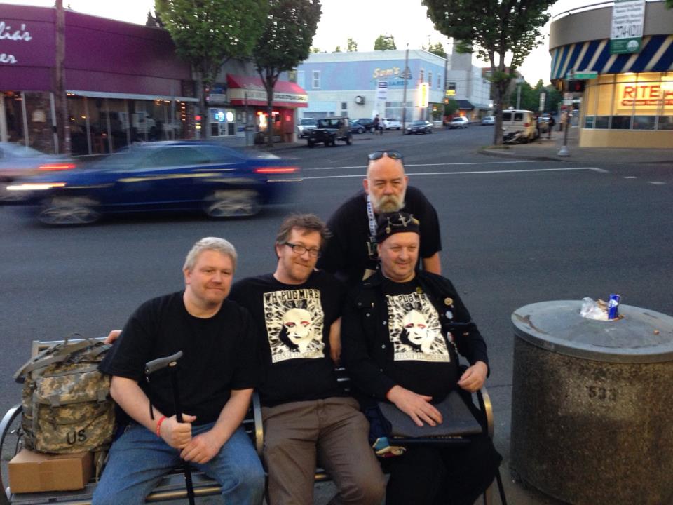In the following picture, here’s Mike Davis showing off the artwork for the Pugmire t-shirt, with Wilum himself.