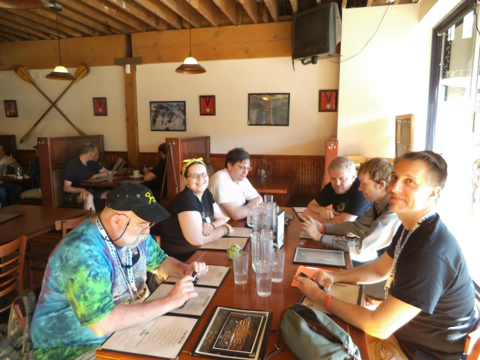 The problem with arriving at 8:30 is that Columbia River Brewing (yes, the same place we’d been eating most of our lunches and dinners so far) didn’t even open until 9AM, a minute or two before the event was supposed to start. So a bunch of Lovecraftian weirdos gathered out on the sidewalk, waiting, scaring the neighbors, and causing a general decline in property values.