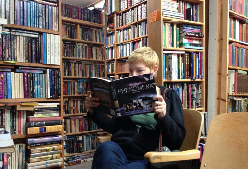 On the way back through town, stopped at Robert’s Books, a great used and antiquarian book shop in the Nelscott part of town. I recommend this place if you ever visit LC. Here Lena is ready about something spooky!