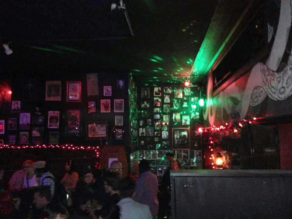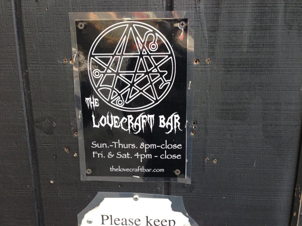 Apart from this once-yearly event related to the HPL fest, the Lovecraft Bar is worthy of mention in its own right. It’s on the small side (and was totally packed for this event) with a suitably goth/horror decor, and walls so packed with photos and art, I wish I’d had time to look more closely. Portland is fortunate to have such a cool Lovecraft-themed bar, to go along with the film festival a few miles away. I was surprised how many Lovecraftians present, many of whom were Portland residents, or many-time attendees of the HPLFF con, had never been to Lovecraft Bar before.